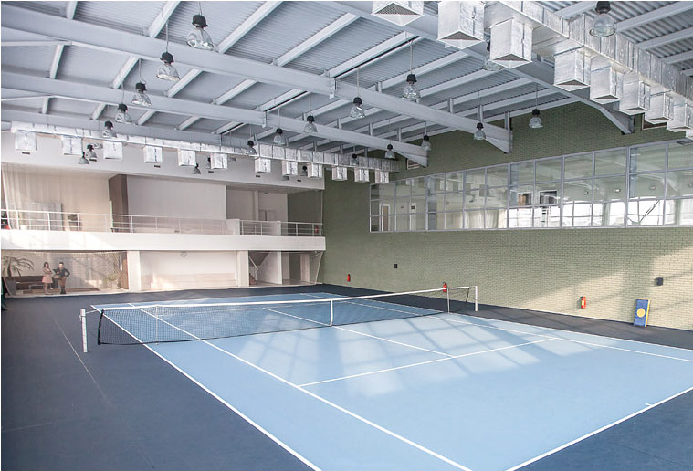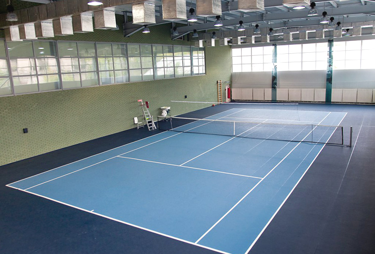 Трехслойное покрытие корта (верхний слой с противоскользящей посыпкой) Taraflex Sport производства французской фирмы «Gerfor» способствует комфортной игре.